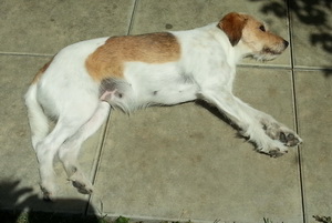Und auch Flocke, die Pfingsten mit uns verbrachte, fand: hinlegen und warten bis es kühler wird, ist die einzig mögliche Taktik. Sie hat wie immer recht.