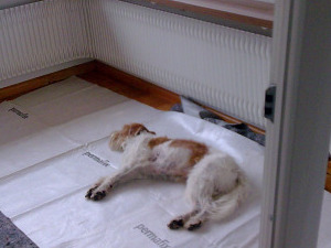 Frauchen und Herrchen waren öfters weg, gut, ich war nie länger als 2 Stunden daheim. Wenn sie dann zurück waren, dann diskutierten sie über Häuser und sie waren immun für meine Hundeblicke... Dann hiess es endlich, dass ein neues Zuhause gefunden sei; aber da fings ja erst richtig an...dann waren wir an einem neuen Ort und dauernd waren wieder fremde Leute da mit Eimern und Hämmern und Lärm-Maschinen... das haut den stärksten Kromi um...